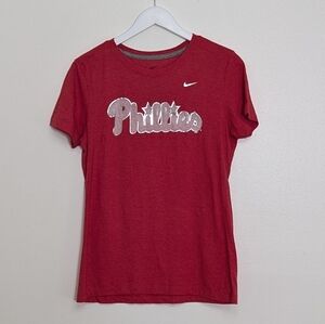 Philadelphia Phillies Shirt Women Nike Large Red Slim Fit Short Sleeve