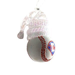 This ornament features a charming snowman crafted around a baseball adorned with the Philadelphia Phillies logo. Its glittery accents add a touch of elegance, making it a sophisticated addition to any sports memorabilia collection. An ideal decorative piece for fans to celebrate their love for baseball in style.