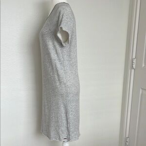 Comfortable soft gray short sleeve dress. Lightweight sweatshirt material. Purposefully distressed around crew neck. Perfect for throwing on with cute sneakers or flip flops! Great condition! Size small but stretchy and could fit a medium/8.