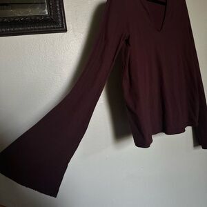 Philanthropy Long Sleeve Top size Medium Women's Red Burgundy V Neck Blouse Boho