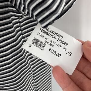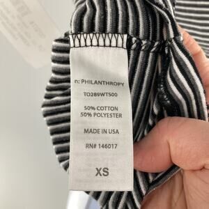 Philanthropy Women's Black Striped Short Sleeve Slit Neck T-Shirt Size XS New