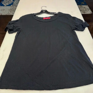 Philanthropy Women’s Black Tee Shirt. Lace Up Short Sleeve Size Medium