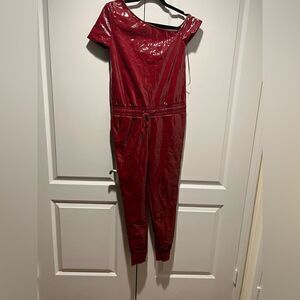 Pocket Short Sleeve Body Suit One-shoulder Casual Women Overall, Wine Red