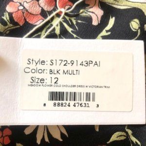 A real statement dress, this vivid silk floral dress will turn heads. Perfect for any occasion year round,. Cold-shoulder with beautiful detail front and back, with finished cuffs. Fully lined.