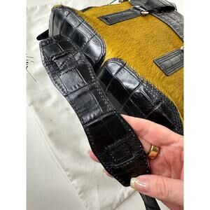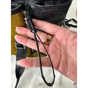 Philip Lim Pashli Crocodile Embossed Leather and Calf Hair Satchel with Crossbody Strap Bag Purse