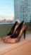 Philipp Plein heels with floral design. Features pink/beige/blacm tones. Perfect for stylish outings. Size 38