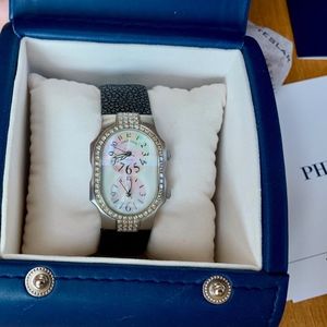 Philip Stein Teslar Diamond Signature Watch comes with metal band as well