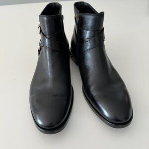 These ankle boots feature ankle strap, buckles and star-shaped metal studs. Side zipper fastening. Metal badge on the heel. Leather lining.