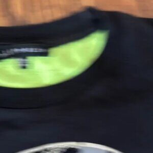 Black t-shirt featuring a striking skull design. Perfect for casual wear.