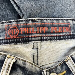 Philipp Plein Capri Jeans Women's Embossed Skulls W32 L25 Faded Black Distressed