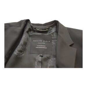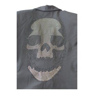 Philipp Plein Couture Black Tailored Blazer Crystal Embellished Skull Back sz L