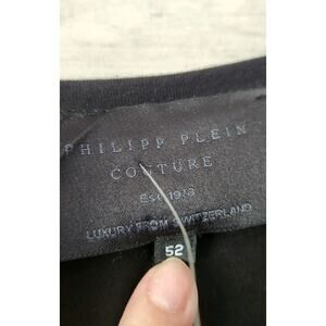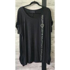 Philipp Plein Couture Logo Embroidered Women's Black T-shirt Size 52 US XXL