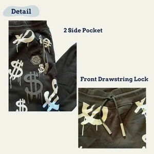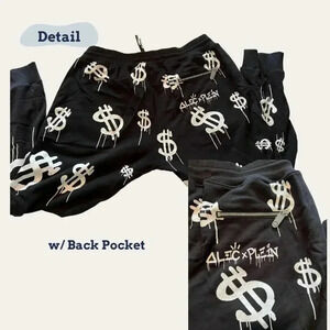 Make a bold statement with these eye-catching Philipp Plein Dollar Sign Joggers. Crafted from high-quality materials, these joggers offer a comfortable and stylish fit. The all-over dollar sign print adds a touch of luxury and rebellion, while the drawstring waist and side pockets provide convenience and functionality. Perfect for casual wear or a night out, these joggers are sure to turn heads.