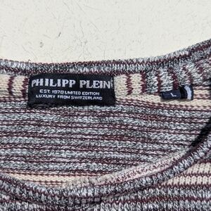 Philipp Plein | Logo Pullover Crewneck Sweater Striped Large B&W Cotton Vintage