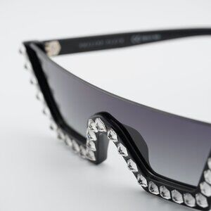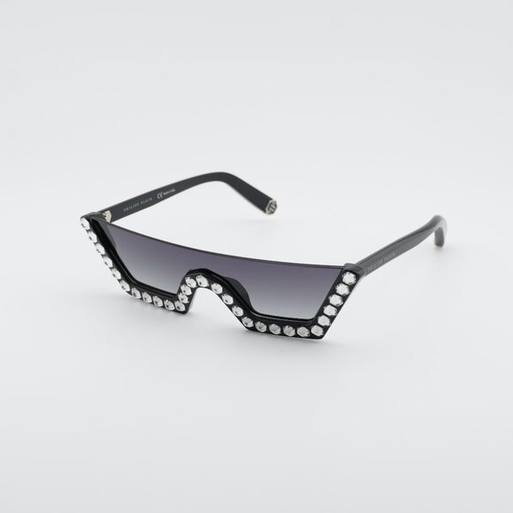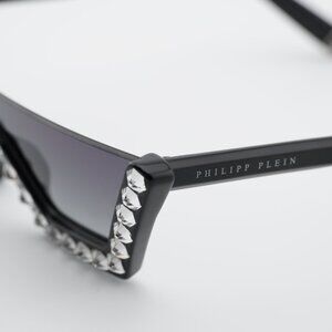Authentic Philipp Plein SPP031S 0700 sunglasses in shiny black frame with crystals.