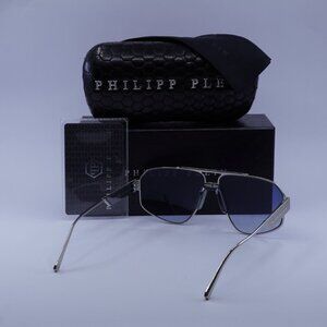 Philipp Plein SPP106M 0579 Aviator Sunglasses – Palladium/Blue