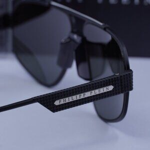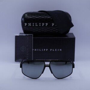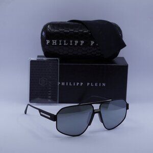 Philipp Plein SPP106M 541X Aviator Sunglasses – Black/Smoke Silver Mirror