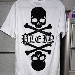 Philipp Plein White Skull & Crossbones Crystal Logo T-Shirt – Size M new