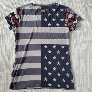 Philipp Plein Womens M Graphic TShirt Stars and Stripes American Flag Skull