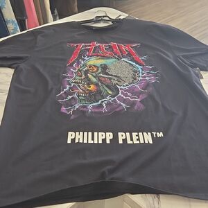 Bold black t-shirt with striking graphic design. Features Philipp Plein branding. XXL brand new