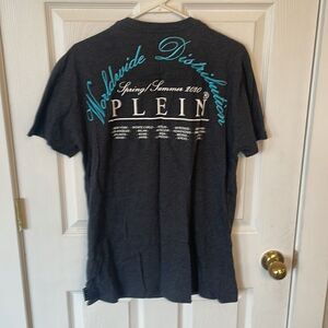 Philipp Plein is a master in transforming simplicity into something original and unique. Like this stretch cotton jersey T-shirt featuring on the front the iconic skull decorated with rhinestones and the print of the corporate lettering. Plein’s global presence is illustrated on the print featured on the back. Ribbed neckline. Two needle stitching hems.