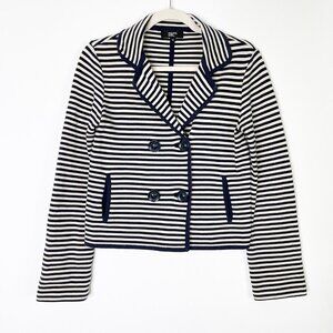 Philippe Adec Blazer Jacket Women’s Size Medium Navy Stripe Knit
