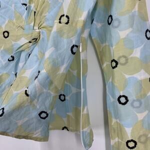 Philippe Adec Paris Small Silk Blouse Floral White Blue Side Zip