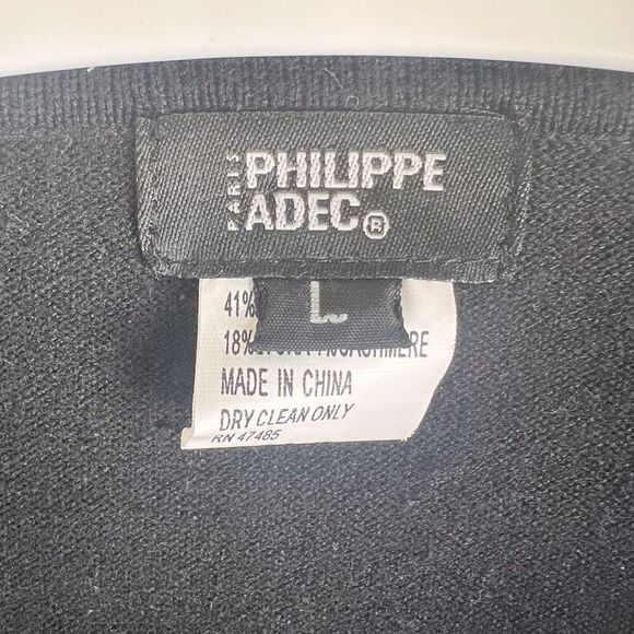 Philippe Adec Paris Womens Beaded Black Silk Cashmere Blend Sweater Size Large