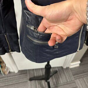 Philippe Adec navy blue 100% leather moto jacket size 4