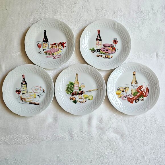 These lovely plates are so cute and very fine quality French porcelain. Each plate is different. All are in excellent condition.