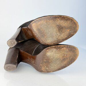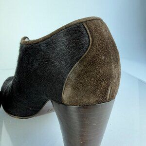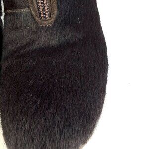 Philippe Model Black Pony Hair Leather Ankle Boots 3.5" Block Heel Made in Italy