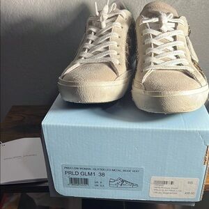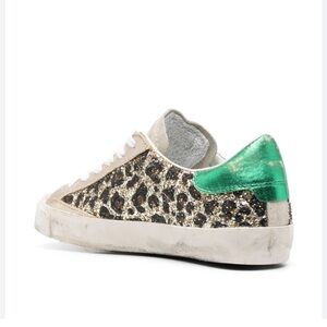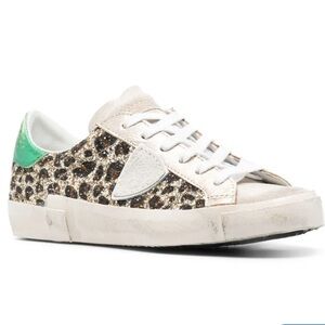 Step out in style with these Philippe Model women's sneakers. Featuring a chic glitter leopard and green design, these shoes offer both comfort and elegance for any occasion. Size 8. Sole is meant to to look worn. These were worn once.