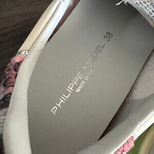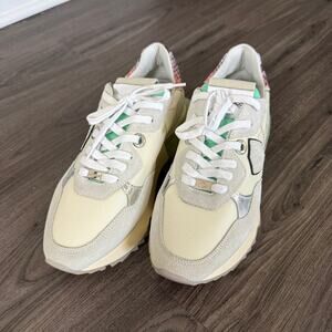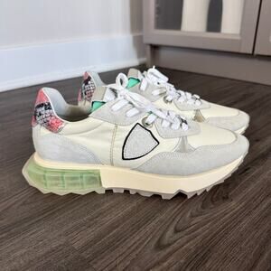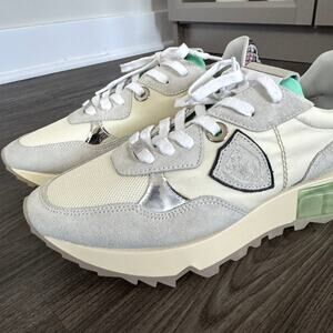 Philippe Model La Rue Grey Suede Low Top Sneakers 38 NEW Neon Green Mesh Inserts