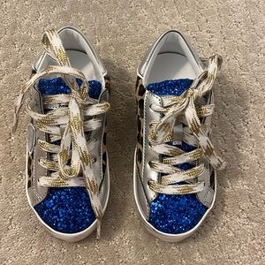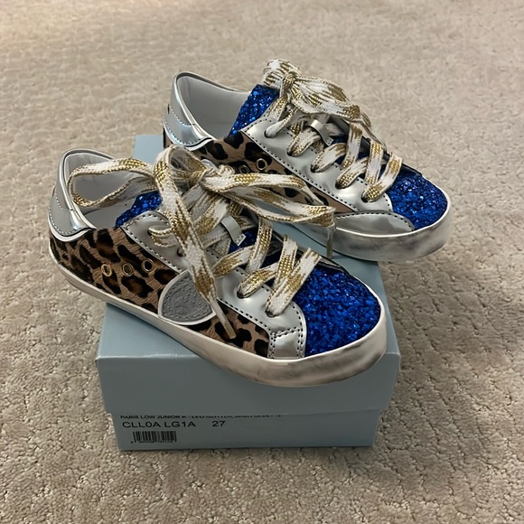 Philippe Model Shoes. Cheetah hair with blue glitter, and silver back. Shoe Laces are gold and white. New with box! These are size 27 (10/10.5)