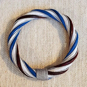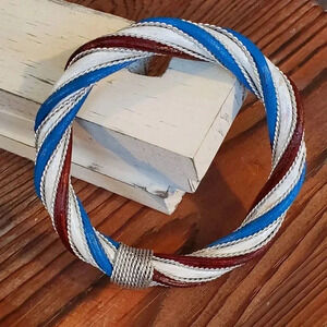Philippines Tricolor Twisted Rattan Silver White Burgundy Blue Bangle Bracelet