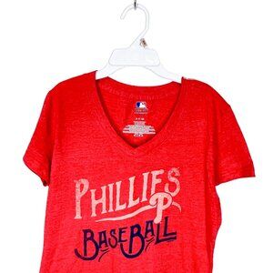 Phillies Baseball Tshirt Size SP Womens V Neck Logo Short Sleeve Small Petite