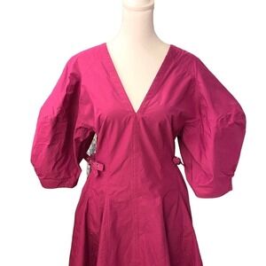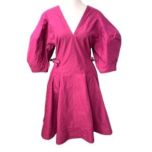 Phillip Lim Puff Sleeve Godet Rivet Side Tie Dress pink magenta fit flare size 8