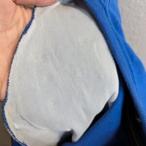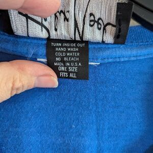 So unique and from the late 80s or early 90s. Cotton cuffed sleeve t-shirt style tunic length top. Leather appliques and goldtone studs. It also has a vintage shirt clip on the side, not original but looks great and is adjustable.