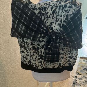 Phillip Lim Size 2 Tie Front Pencil Skirt Black White Multi Abstract Print Silk