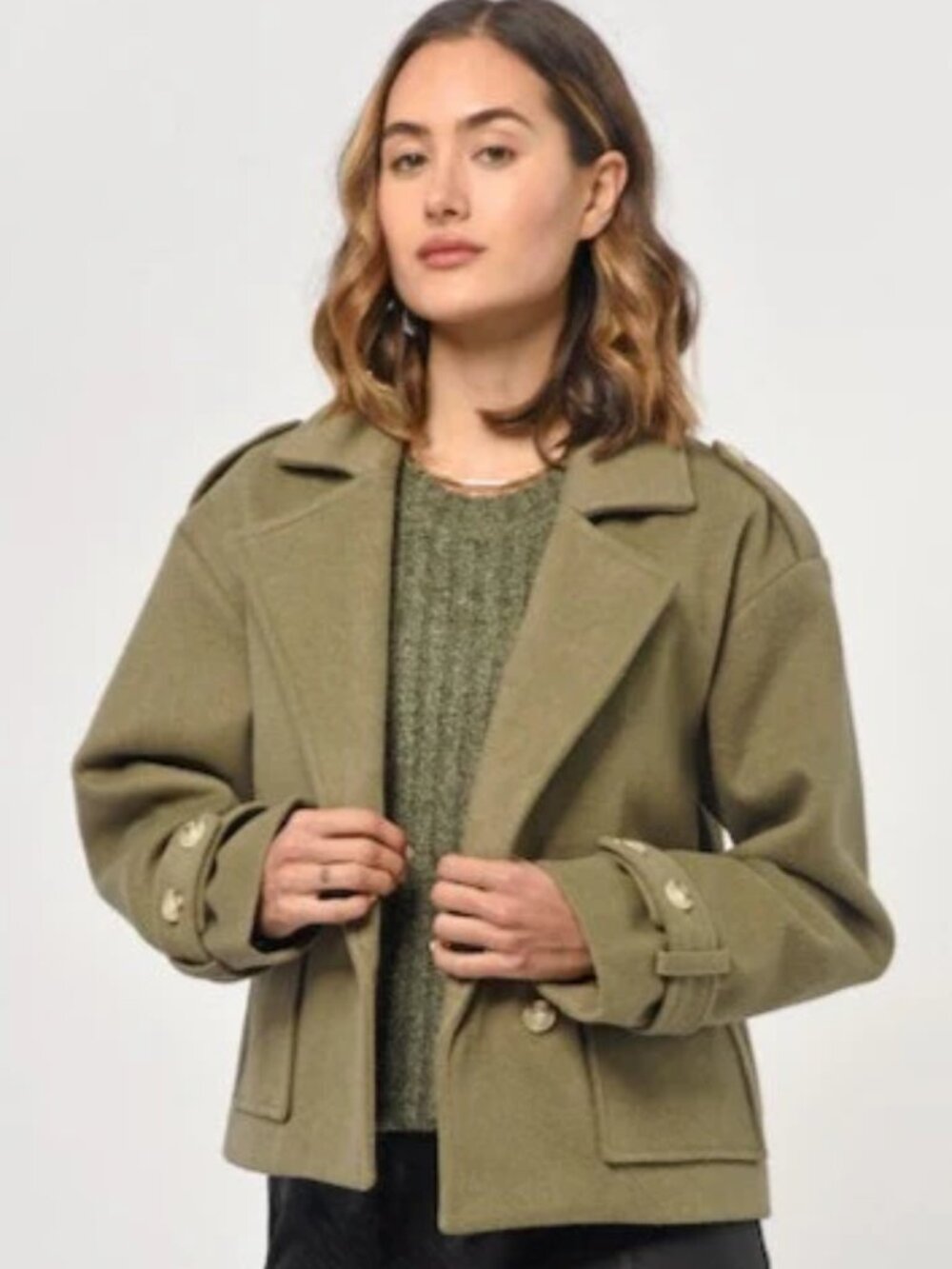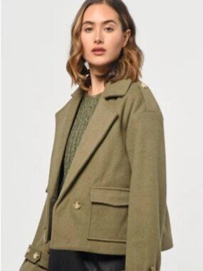 Designed with a wool blend for superior insulation, this jacket features belted cuffs and front pockets for convenience. Perfect for layering over a casual outfit, this olive jacket is sure to keep you cozy and stylish.