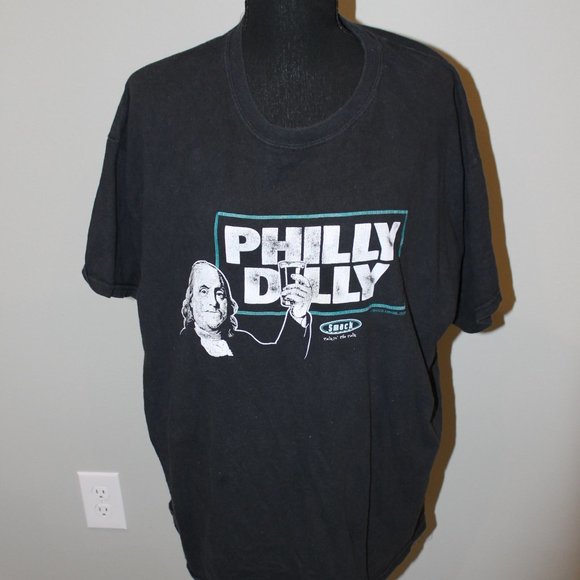 Large and a bit of a wide scoop neckline for this Philly Dilly shirt