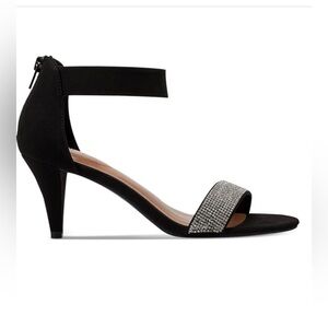 Get a stunning evening look in Style & Co.'s Phillyis evening sandals featuring a sleek ankle strap and glitter details. 2-3/4" heel