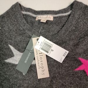 Philosophy 100% Cashmere Gray Sweater with Pink and White Stars