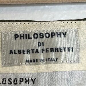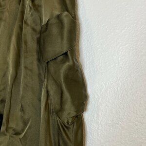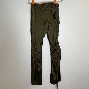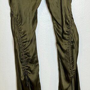 Philosophy Alberta Ferretti 100% Silk Satin Cinch Leg Skinny Pant Olive Green 4