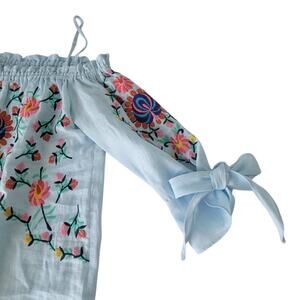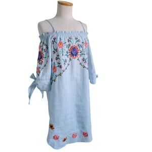Philosophy Aqua Embroidered linen summer dress MD Coastal Boho chic