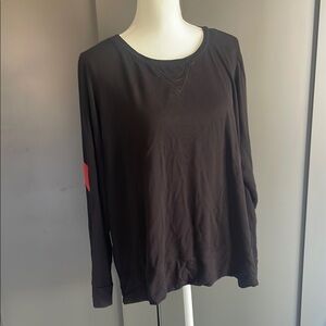 Philosophy Black Long Sleeve Top with Red Heart Patch