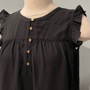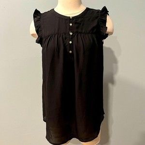This Philosophy Black Ruffle Sleeve Gold Button Chiffon Blouse is in great condition.
