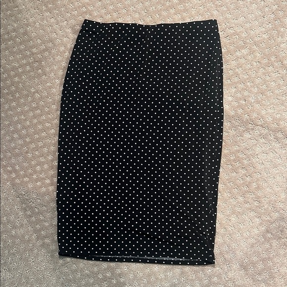 Elegant pencil skirt with classic polka dot pattern. Ideal for versatile styling.