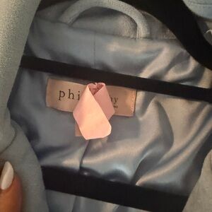 This Philosophy blazer in a sophisticated gray hue features a notched lapel and a fitted silhouette, offering a polished look for any occasion. Its structured design ensures a contemporary style that complements both formal and casual outfits.