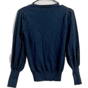 This deep navy blue crew neck sweater features long sleeves and a fitted silhouette that flatters the figure. The ribbed neckline adds a classic touch, making it a versatile addition to any wardrobe.